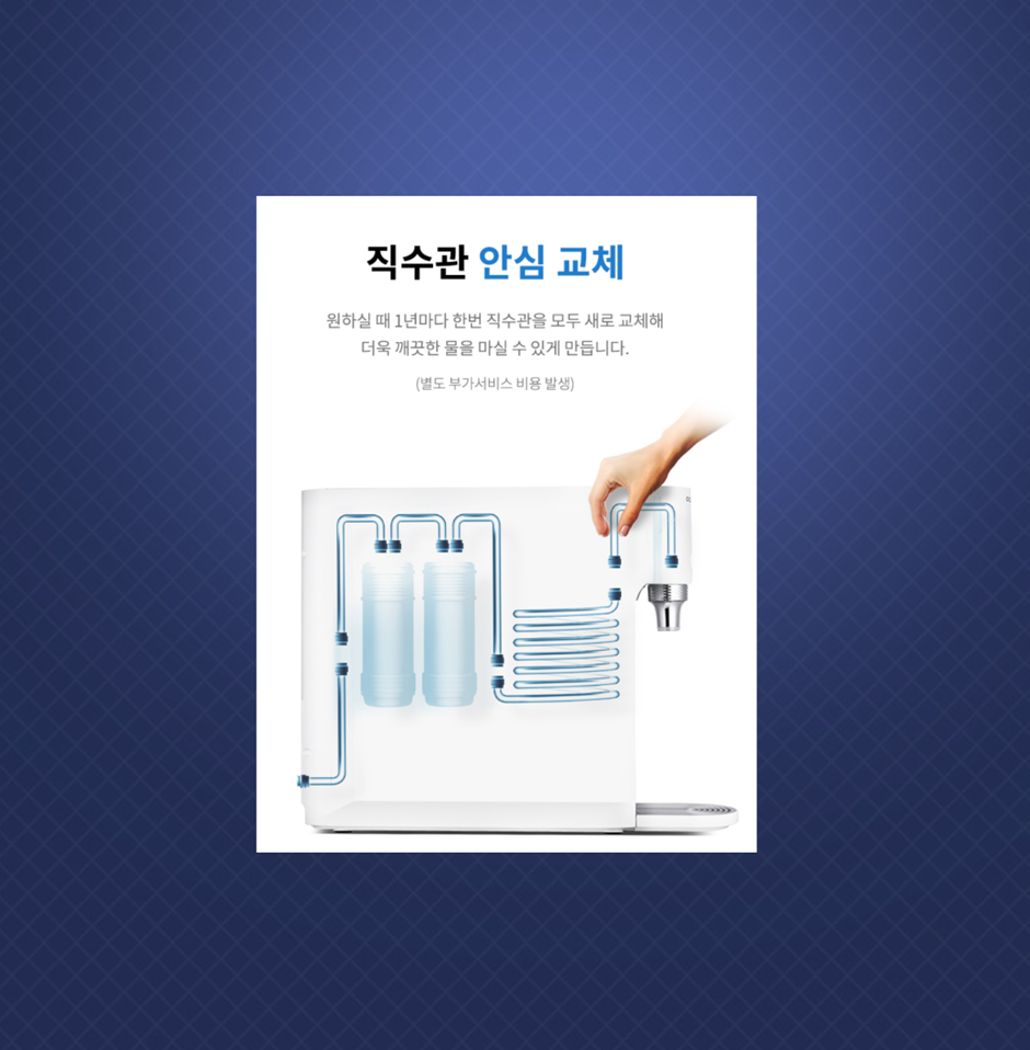1년마다 한번 직수관을 모두 새로 교체가 가능해서깨끗한 물을 마실 수 있다고 해요.