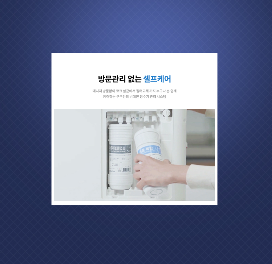 쿠쿠 100도씨 정수기는 셀프 관리가 가능해서 좋았어요.