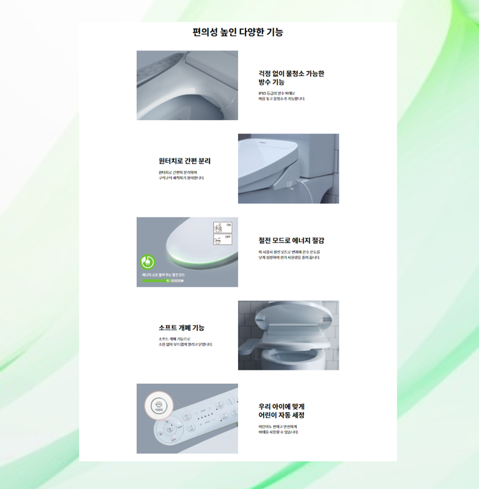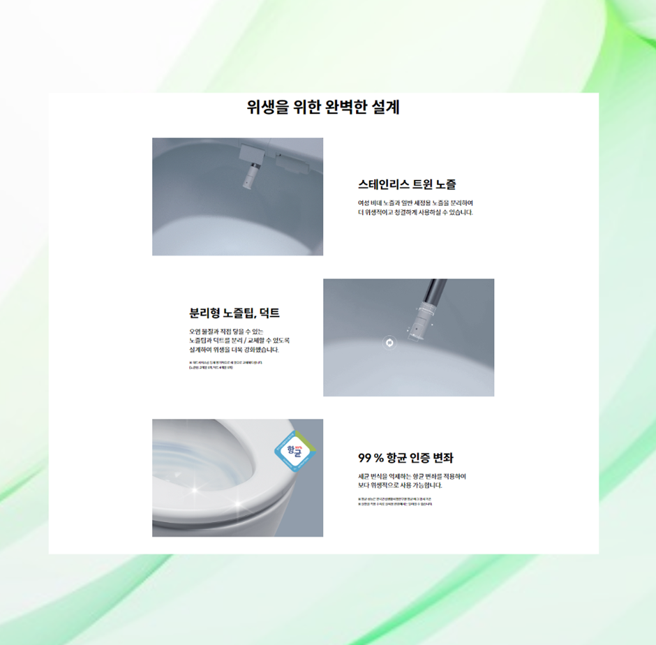 브랜드 고객만족도 4년 연속으로 비데 부문 1위도 하고 있고요