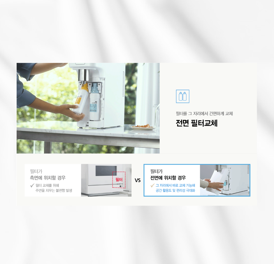 필터 교체하는 부분도 정수기 전면부에 있어서
