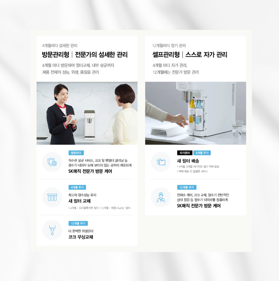 저는 셀프 관리로 진행했지만 조금 더 위생을 고려하고 자가로 필터 교체가 어렵거나 번거로우신 분들은