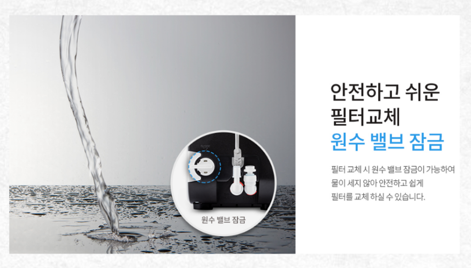 필터 교체 시 원수 밸브 잠금 기능도 있어 물도 안 세고